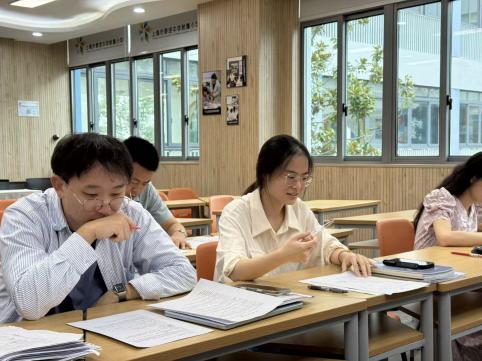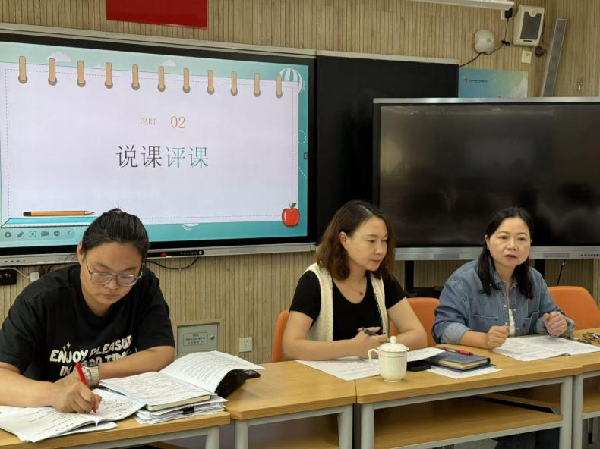 课堂后,两位执教教师说课反思。陶思源分享情境设计思路,反思情境与问题衔接不足;缪思琦阐述“情境推翻与重构”过程,针对树状算图问题提出改进方向。接着各备课组深度评课。